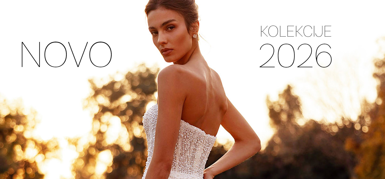 Drage bodoče neveste, z veseljem sporočamo, da so vam našem salonu že na voljo čudoviti modeli iz kolekcij za leto 2026! Sveži kroji, dih jemajoče tkanine in edinstveni detajli čakajo na vas, da jih odkrijete in izberete obleko za svoj “dan najlepših sanj”.